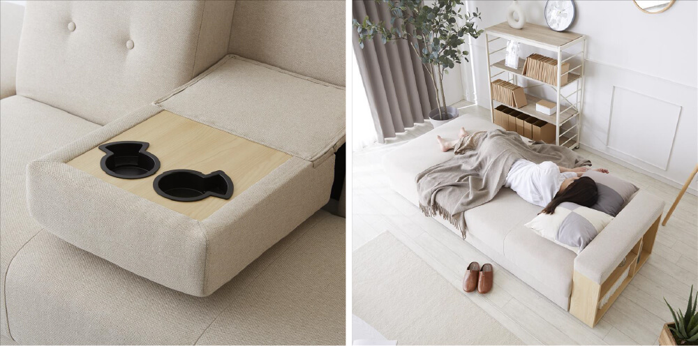 ひとつでベッド、ソファ、収納の3つの機能をもっているソファベッドで