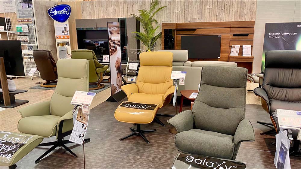 さらにリビングコーナーでは、北欧生まれの快適チェア「galaxy」のコーナーが登場!