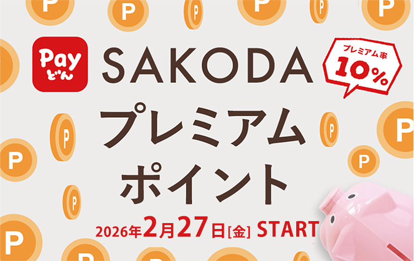 Payどんで地域振興券(SAKODAプレミアムポイント)をご購入いただくと、