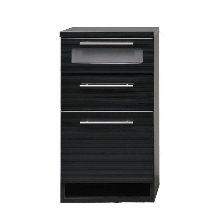 艶やかなブラックが空間に洗練された印象を与える45cm幅チェスト。丈夫な箱組仕様の引き出しに、最下段フルオープンレールで使い勝手も良好。収納力とデザイン性を兼ね備え、豊富なサイズから選べる安心のシリーズです。