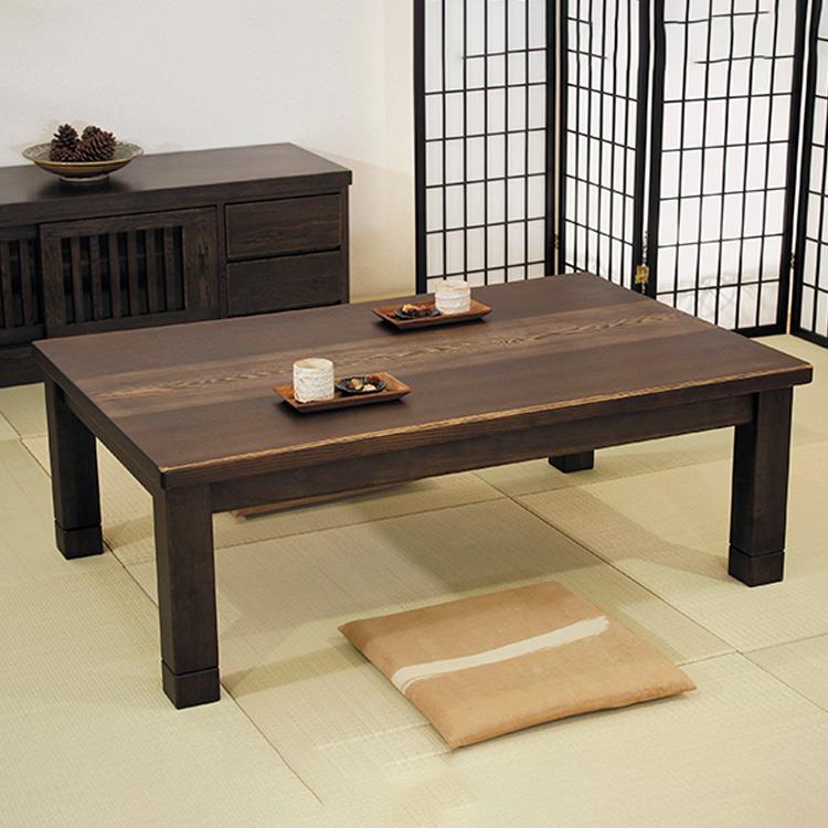 天板中央にはがし加工を施した木目の素朴なぬくもりを感じるコタツ。天板には木質感を強調するうづくり技法を施しています。高さ調整で、35.5cmから41.5cmまでの高さでお使いいただけます。