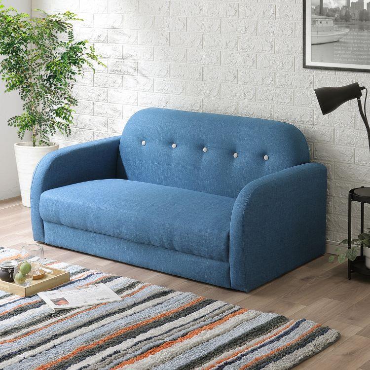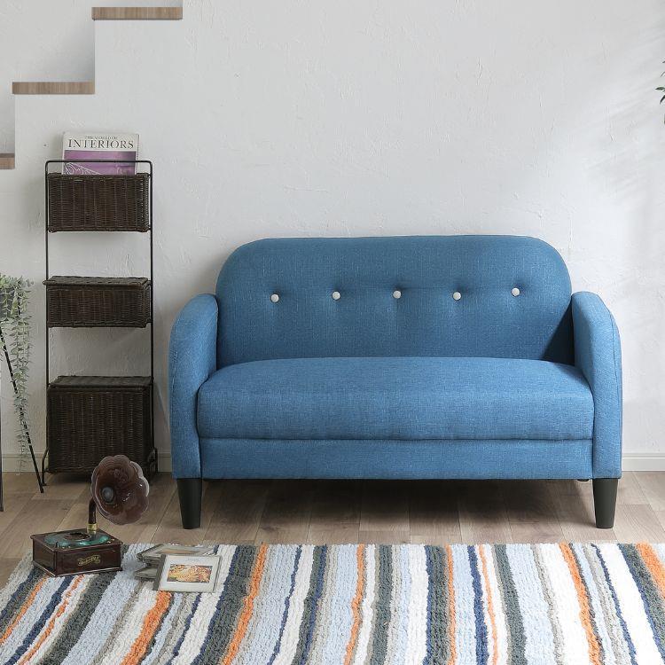 丸みのあるフォルムと背面のボタンデザインがやさしい印象を与える2人掛けソファ。爽やかなブルーカラーが空間のアクセントになり、コンパクトサイズで置き場所を選びません。ファブリックの心地よさで、毎日のくつろぎを快適に演出します。