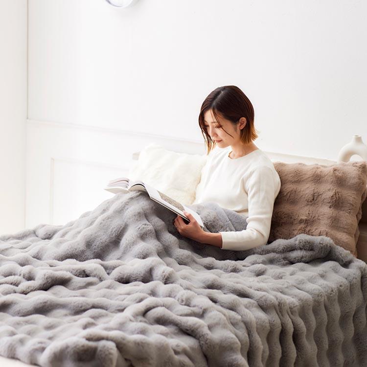 【WEB限定】 ASHEL ふわもこラビット プレミアム 毛布 ダブル グレー