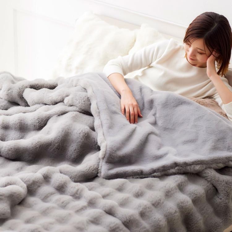 【WEB限定】 ASHEL ふわもこラビット プレミアム 毛布 クイーン グレー