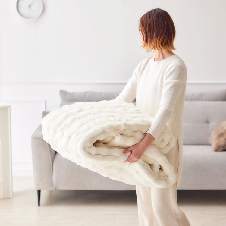 【WEB限定】 ASHEL ふわもこラビット プレミアム ラグ 190×190 アイボリー