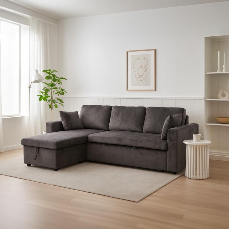 ソファ下に大容量の収納スペースを備えた便利な多機能ソファベッドです。肘が付け替えられるので、右カウチ、左カウチ対応。お部屋のつくりやレイアウトによって選べます。