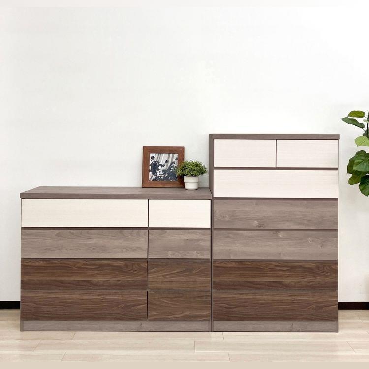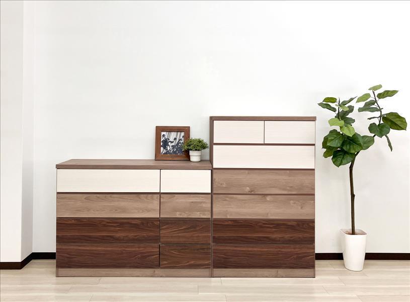 木目や色味の違いを楽しめるデザインが、お部屋のアクセントになる国産ローチェスト。幅120cm・4段の収納力で、衣類や小物をすっきり整理できます。程よい個性と使いやすさを兼ね備え、空間に表情をプラスする一台です。