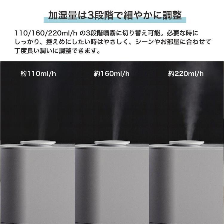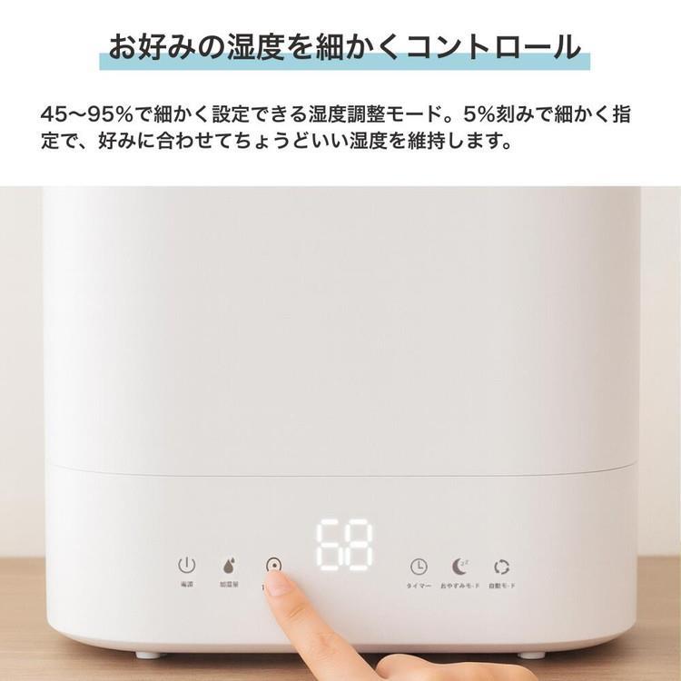 省エネと静音を両立した、超音波式の加湿器。最大加湿量220ml/1hで6畳まで対応しており、寝室やワンルームなどの使用にちょうどよいサイズです。