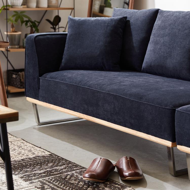 座り心地抜群なポケットコイル構造のコーデュロイソファです。オットマンの配置を変えたり、使い方いろいろ!ステンレススチール脚でお掃除ロボットにも対応しました。