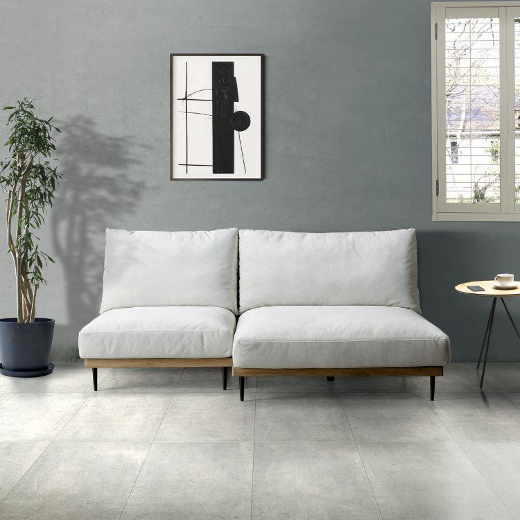 全体的に奥深のゆったりとしたカウチソファ。あぐらをかいたり、足を伸ばしたり、いろんなスタイルで至福の時間を過ごせます。