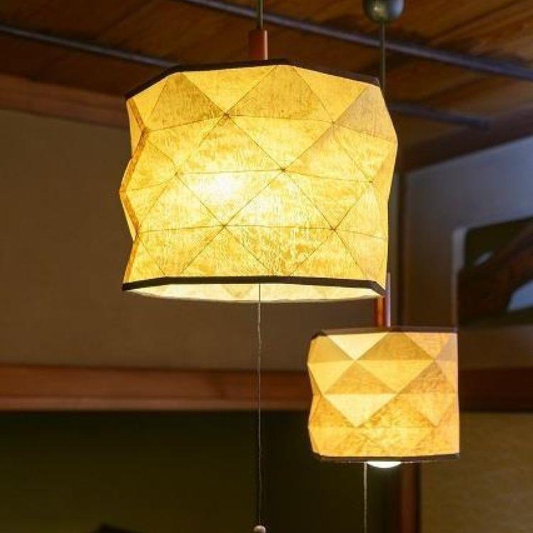 和の趣とモダンなダイヤカットが調和する、やわらかな光の3灯ペンダント。 特殊紙オイルパーチ越しに広がるあたたかな灯りが、空間を上品に包み込みます。日本製ならではの丁寧なつくりも魅力。