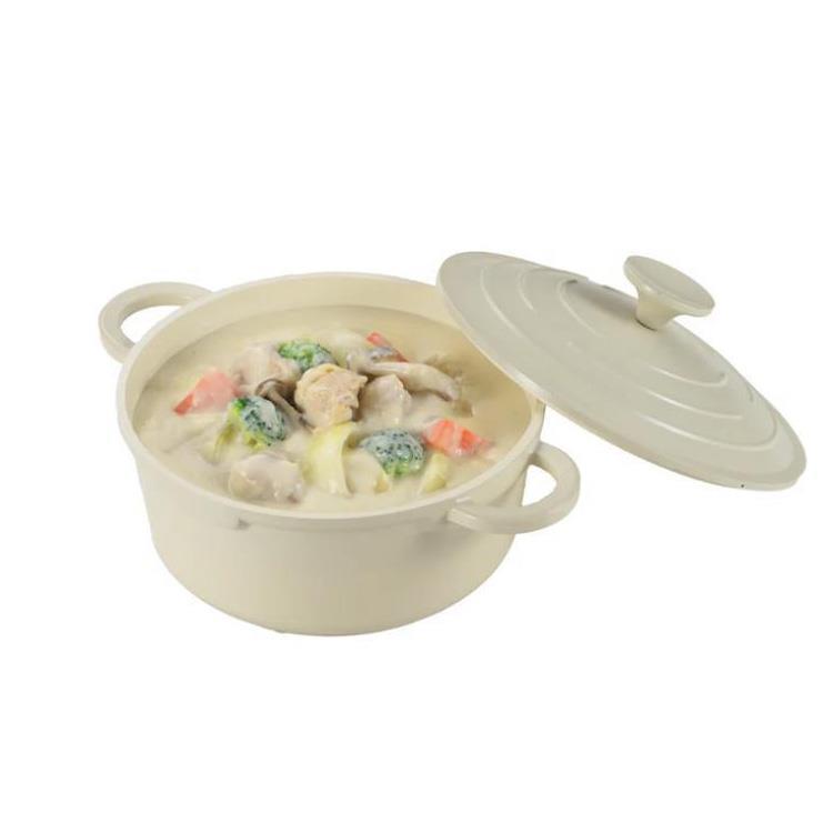 無水調理もできるじっくり煮込み鍋は、蓋の裏面の凹凸で蒸気を循環し、食材の水分でうまみを引き出してくれます。内面セラミック加工でお手入れも簡単です。