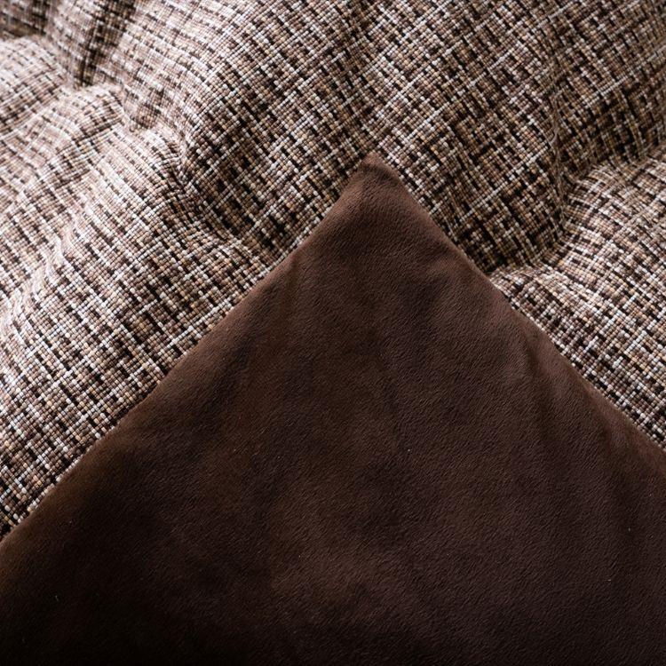 北欧デザインのギャベ柄が魅力の大きめの厚掛け布団です。表地はずっと触っていたくなる滑らかなミルクファー生地。中わたには抗菌防臭機能付きマイティトップ綿を使用しており、清潔で快適です。落ち着いたブラウンでゆったりくつろげます。