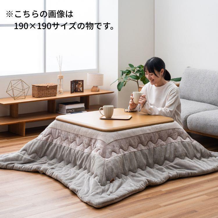 4種類の生地をバランス良くパッチワークした、大きめのこたつ用の薄掛け布団です。シェニールジャガードの立体感と、落ち着いたグレーがモダンなリビングにぴったり。裏地はフランネル素材で、肌触りも暖かさも抜群です。軽くて取り扱いやすいのも魅力です。