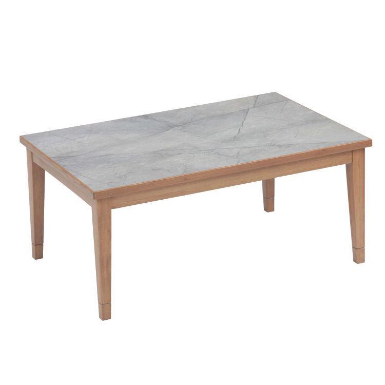 おしゃれな石目調の天板とオーク無垢材の面材が組み合わさったこたつです。シーズンオフはセンターテーブルとして活躍します。コードを収納できる便利機能付きです。