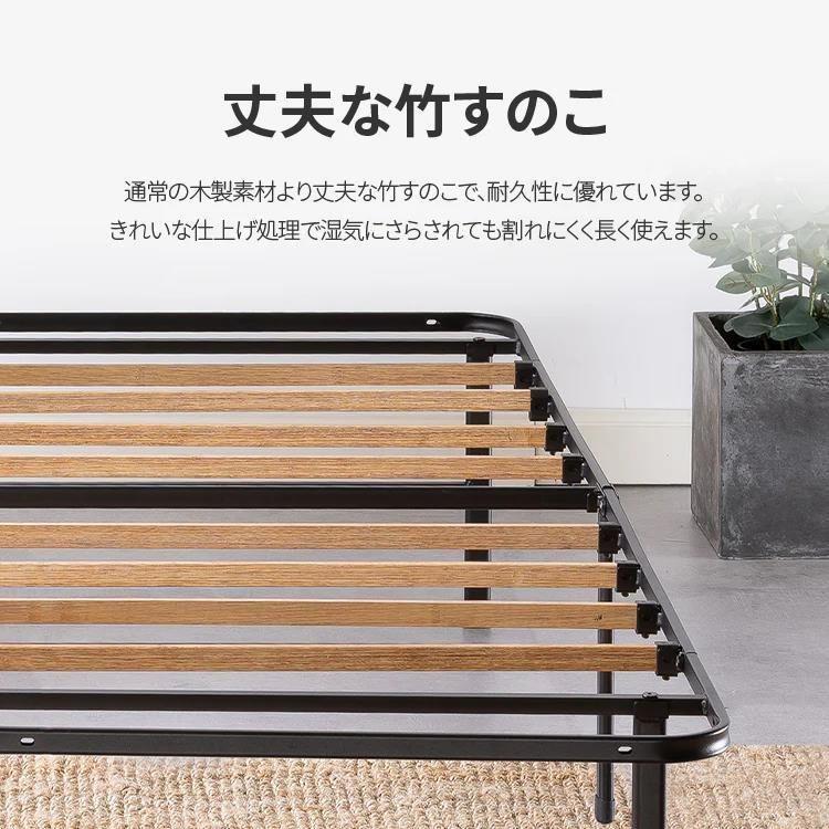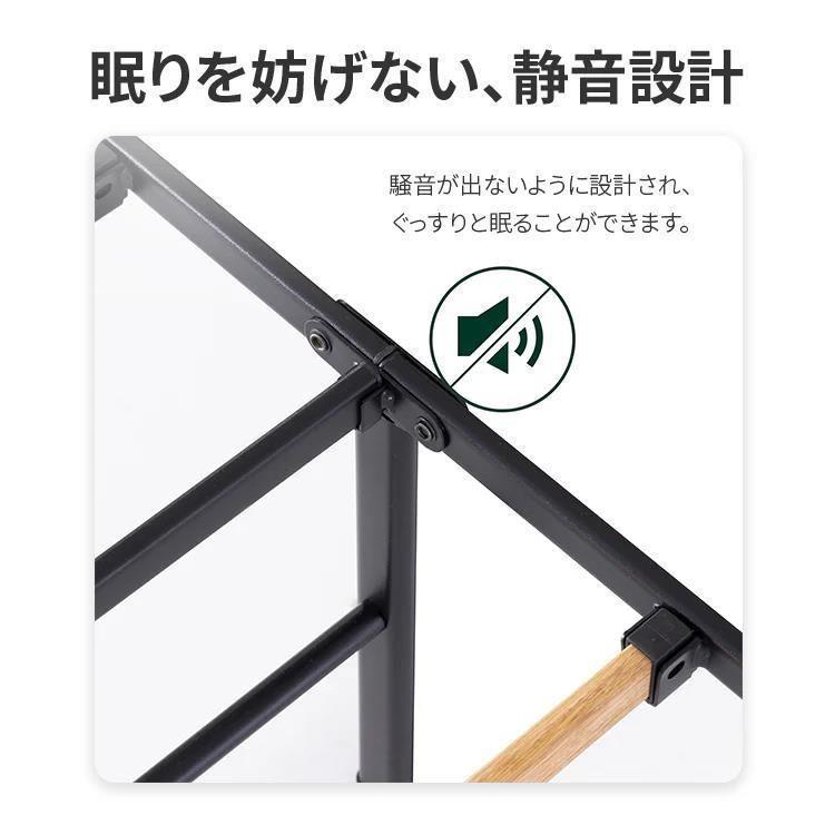 通気性に優れた竹すのこ仕様のシングルパイプベッド。耐久性の高いスチールフレームと竹材で安定感があり、ベッド下33cmの収納スペースも確保。湿気対策にも配慮し、簡単組立で快適な眠りを支えるシンプル設計です。