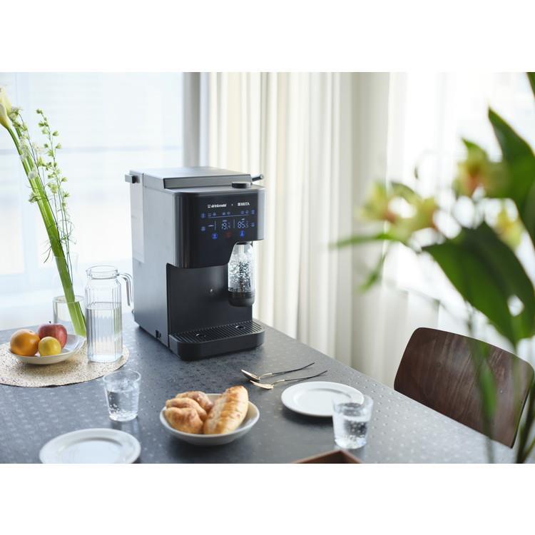 浄水・冷水・熱湯・炭酸水を一台に集約した多機能ウォーターサーバー。 BRITAカートリッジ採用で、おいしい水を手軽に楽しめます。 微炭酸から強炭酸まで4段階で濃度を選べ、冷水から炭酸水までワンタッチで使えます。