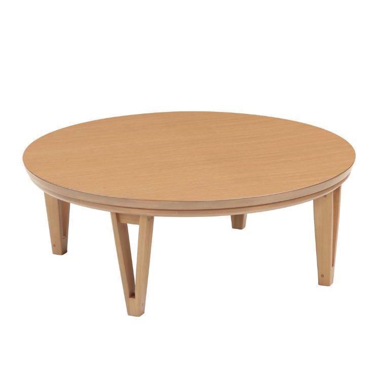 オーク突板の木目が美しい4人掛けの大きい円形こたつ。安心の日本製と傷に強いUV塗装で、日常使いも安心です。シーズンオフはそのまま円形テーブルとしてお部屋を優しく彩ります。