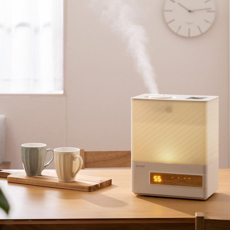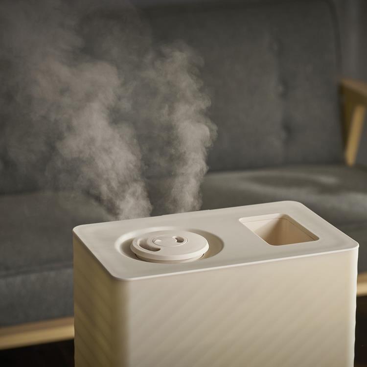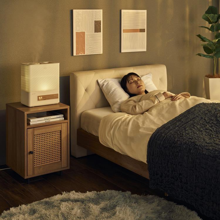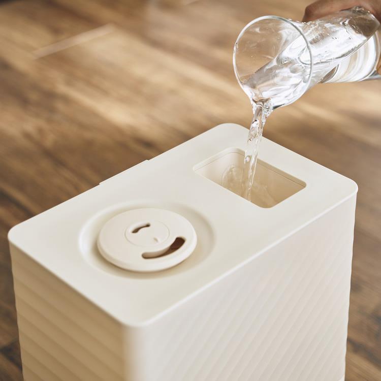 約5Lの大容量タンクでたっぷり潤す、上部給水式のハイブリッド加湿器。 本体内部の温められたミストを噴霧することで、加湿中もお部屋の温度が下がりにくくなります。 湿度コントロール機能付きで、40%~75%の間でお好みの湿度に設定可能なので、室内環境に合わせて快適にお過ごしいただけます。