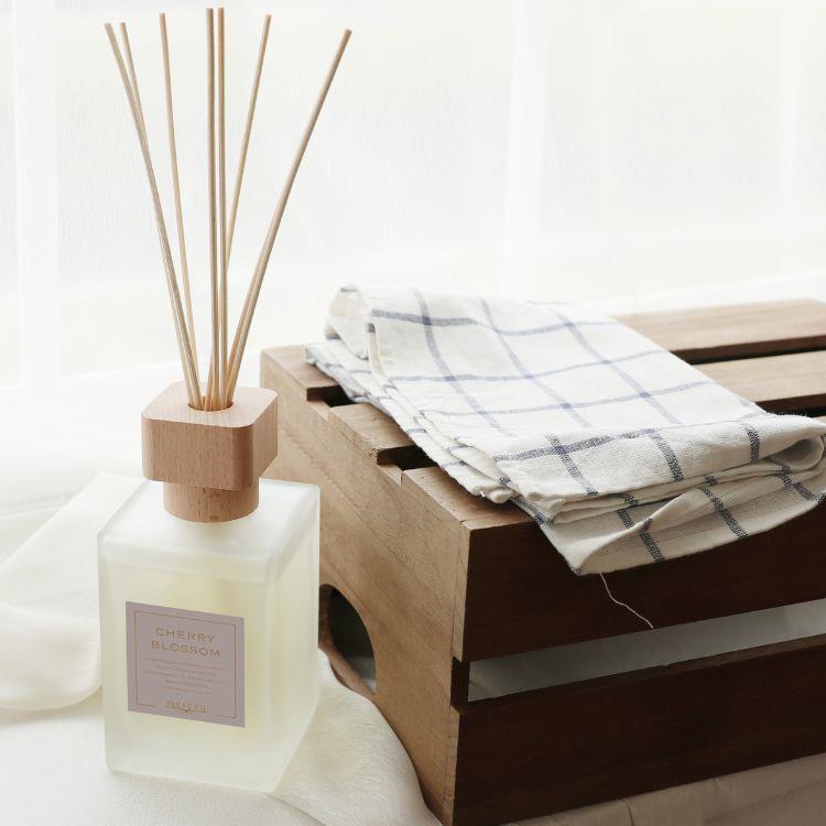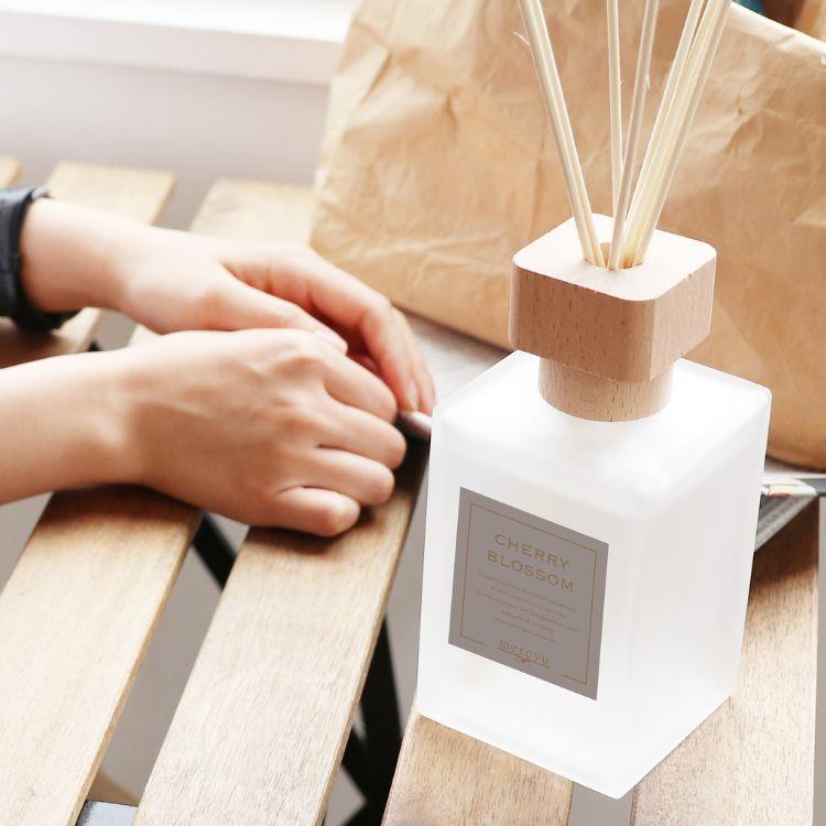 甘酸っぱいチェリーに、咲きたての花を思わせるやさしいフローラルが重なる香り。500mlの大容量で約6ヵ月香りが続き、空間をふんわり包み込みます。北欧テイストのガラスボトルが上質なインテリアにも。