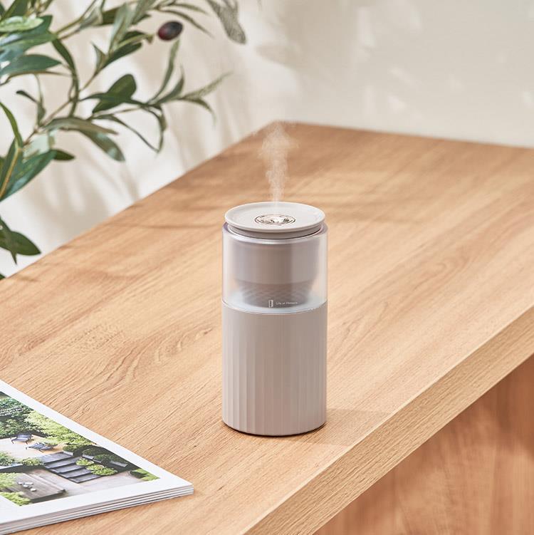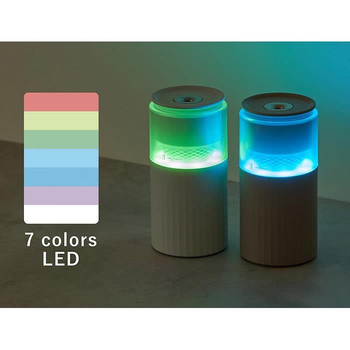 間接照明代わりにもなるスマートな円柱タイプの充電式加湿器。 小型ながら加湿モードを2種類、自動で電源が切れるオートオフ機能を搭載するなど、機能面が充実。 本体上部を回すとLEDライトが点灯し、無段階調光が可能。また自動で7色の光に変わるモードは、眺める楽しさも。 パーソナルサイズのため、オフィスでの使用にも便利です。