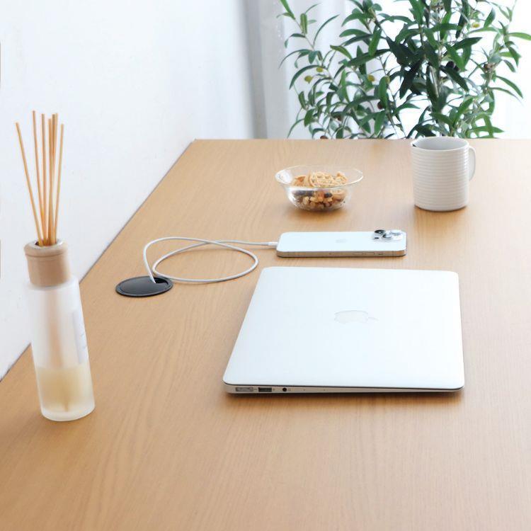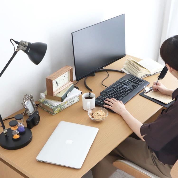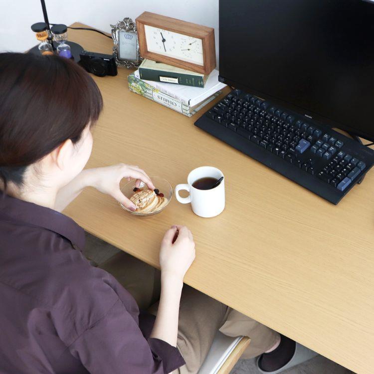 幅130cm・奥行65cmで作業スペースをゆったり確保できるデスク。ナチュラルな風合いが空間になじみ、配線コード穴と天板裏の電源タップスペースでデスク周りもすっきり。PC作業や学習を快適に支える一台です。