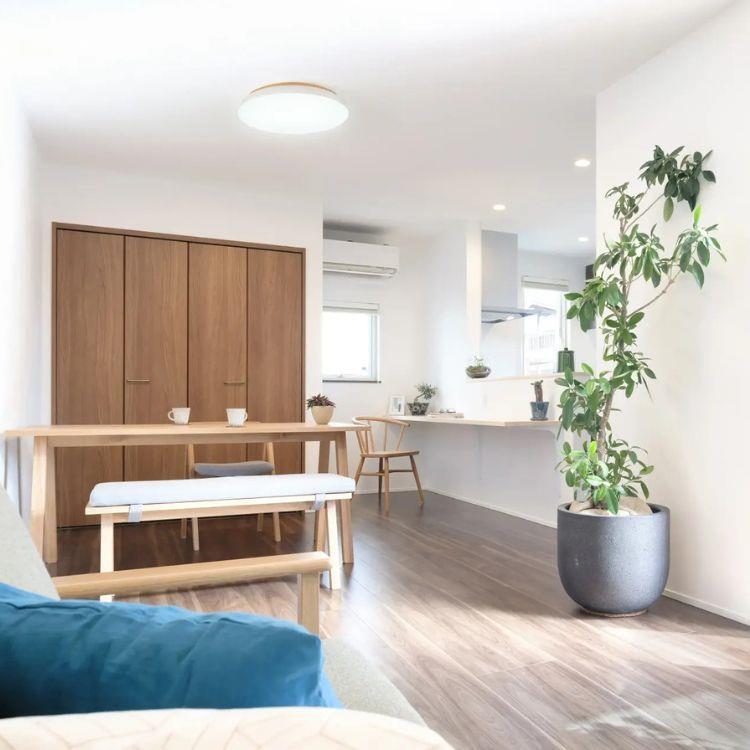 フラットなデザインに、ふわりと浮かぶゴールドがやさしく映えるシーリングライト。調光・調色各10段階やアッパーライト、常夜灯を備え、シーンに合わせた灯りを演出します。清潔感のあるホワイトで空間を明るく整えます。