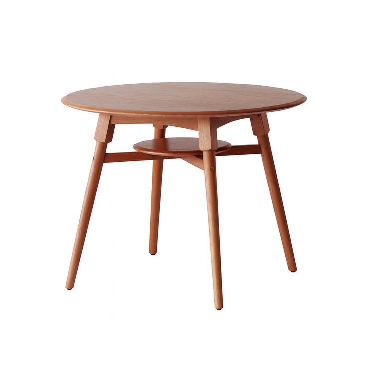 どこか懐かしいレトロでコンパクトな天然木の円形ダイニングテーブル。 全体的に丸みを帯びたデザインが空間を落ち着いた印象に。