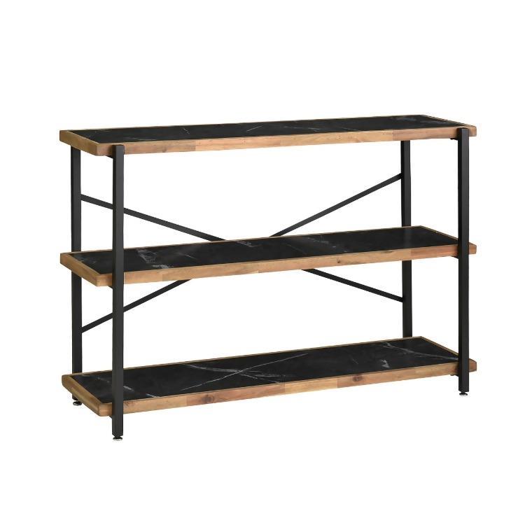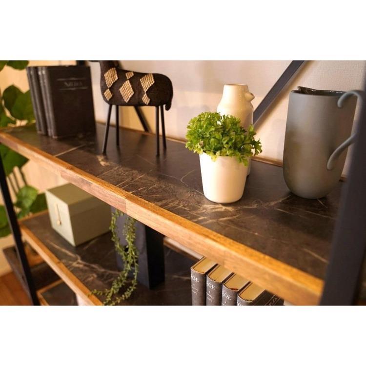 アイアンと木材を掛け合わせ、厚さ30mmの棚板を備えた、迫力ある組み立て家具シリーズの3段シェルフ。天板・棚はメラミン貼りですので熱・キズに耐性があります。エッジ部にはアカシア天然木を使用しました。