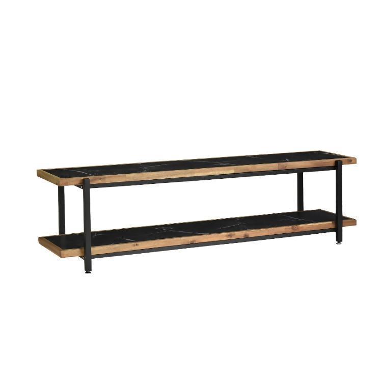 アイアンと木材を掛け合わせ、厚さ30mmの棚板を備えた、迫力ある組み立て家具シリーズのローボード。天板・棚はメラミン貼りですので熱・キズに耐性があります。エッジ部にはアカシア天然木を使用しました。