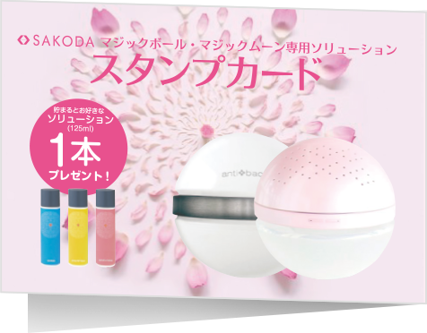 マジックボールシリーズをお持ちのお客様へおすすめする、マジックボール・マジックムーン専用ソリューションスタンプカード。 スタンプ押印の対象は、SAKODAマジックボール・マジックムーン専用ソリューション125ml。