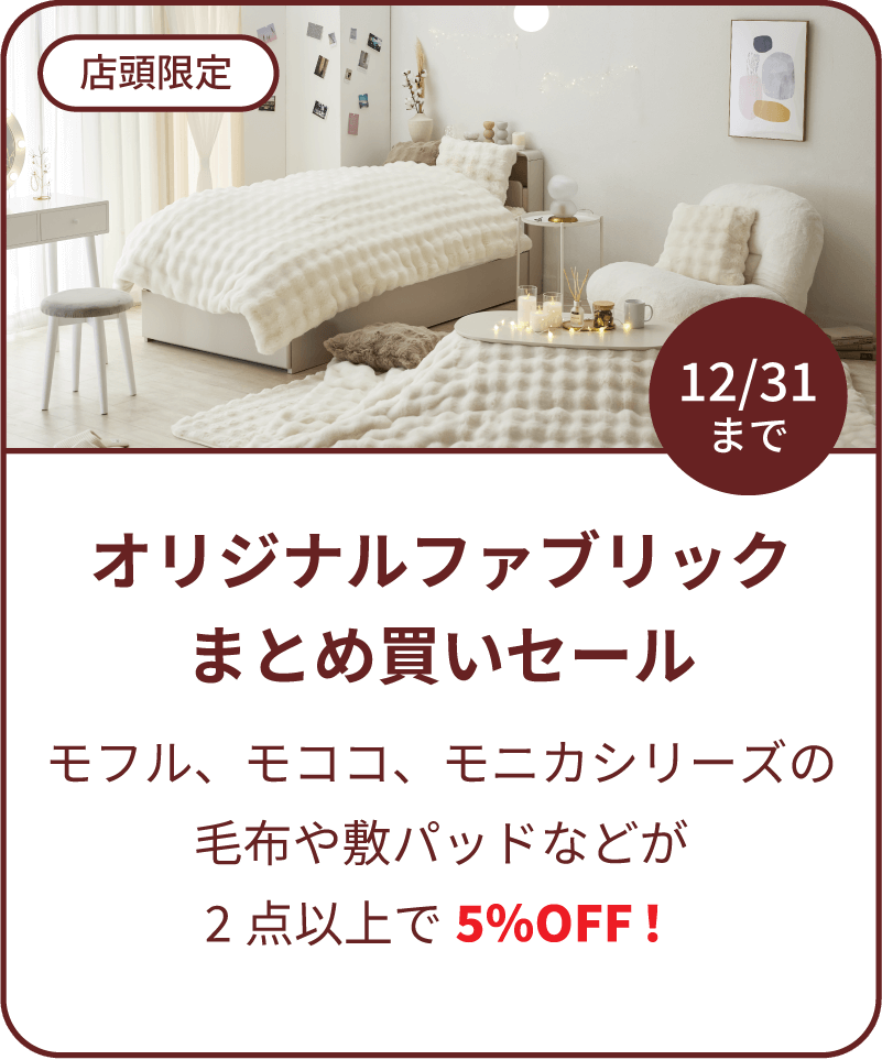 モニカ・モココ・モフルは 2点以上で5%OFF。