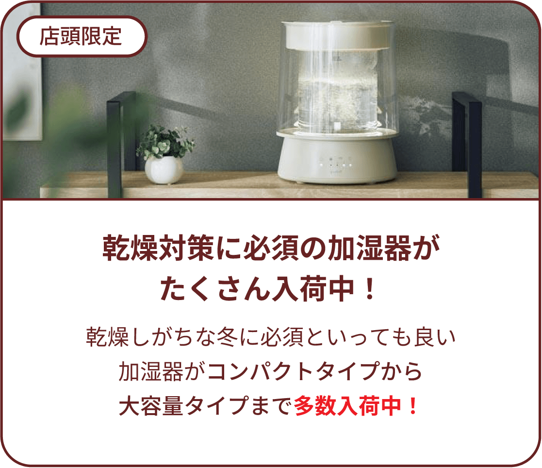 加湿器を置くだけで、のどやお肌の乾燥対策にも。