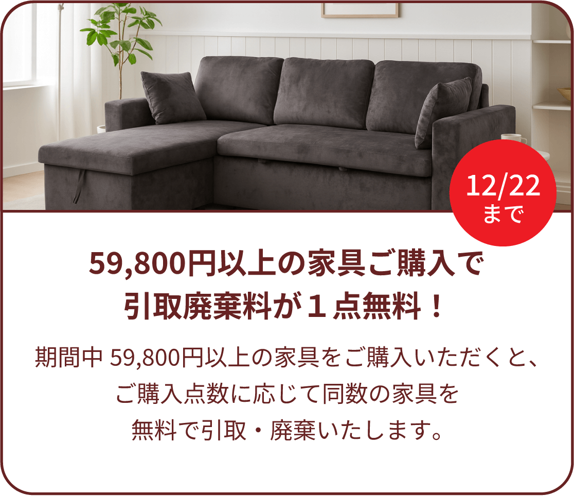 \ 家具の引取廃棄無料キャンペーンも開催中!/
